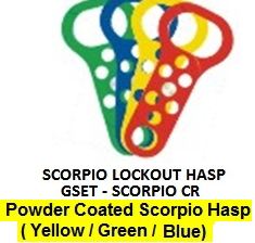 LOCKOUT SAFETY FULLY POWDER COATED LOCKOUT HASP (45 MM DIAMETER) GSET – SCORPIO Fully Powder Coated Dual Action Safety Lockout Hasp is excellent in every situation – very flexible and smart, with 6 locking points.